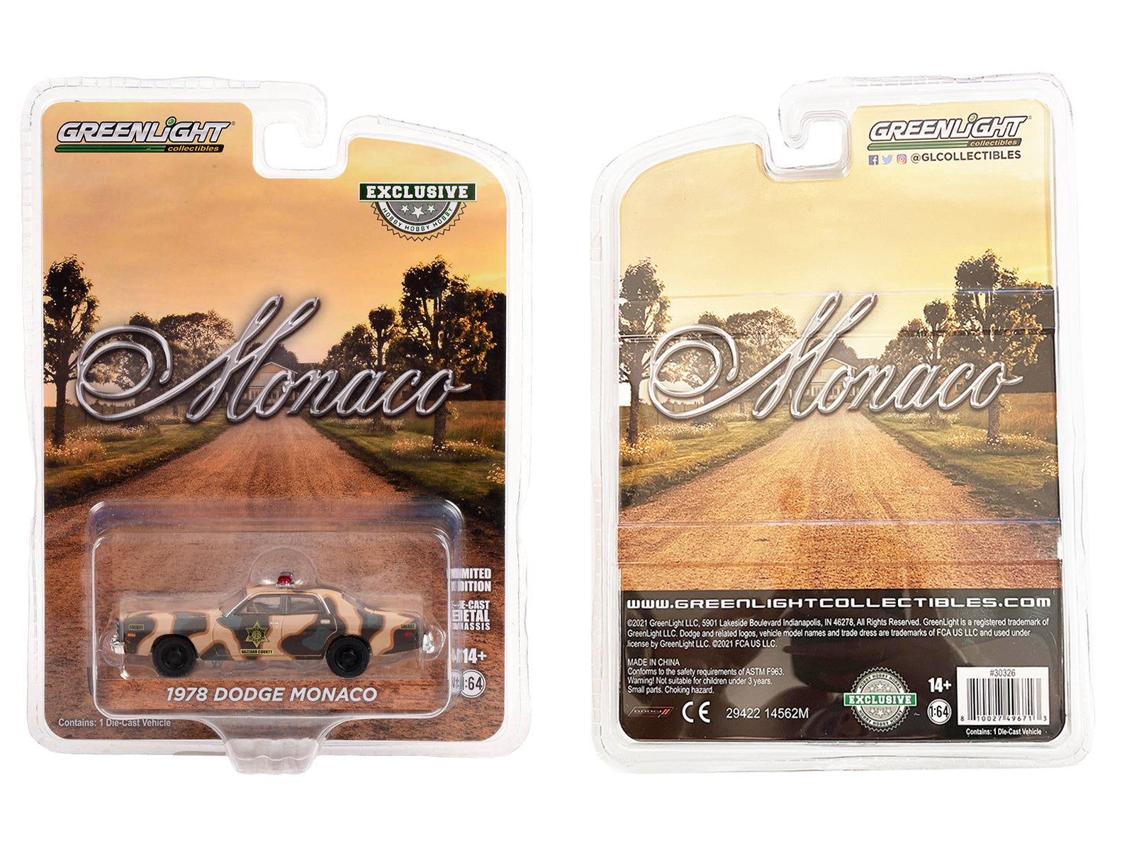 1:64 1978 年道奇摩纳哥哈扎德县警长迷彩压铸